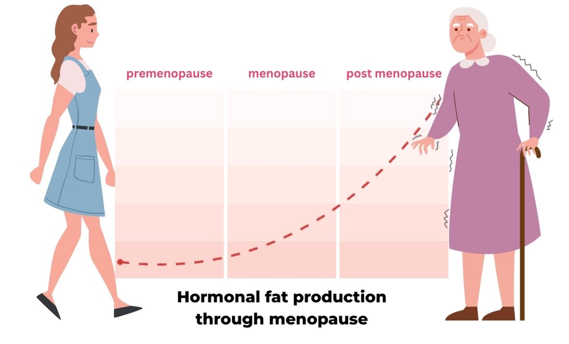 Before, during and after menopause, hormonal fat production increases…