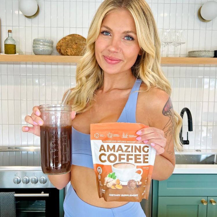 Each cup of Amazing Coffee is packed with 12 superfoods & functional mushrooms that support energy, cravings, focus, and a flatter-looking belly.