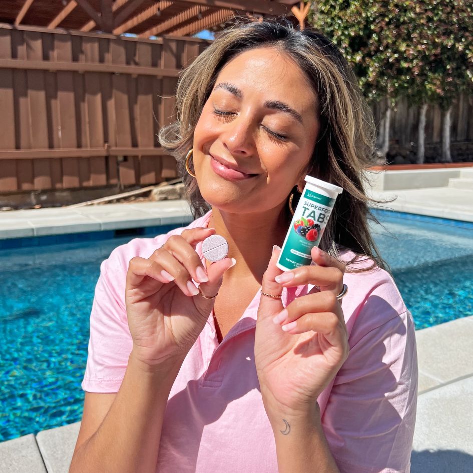 Simply drop one Superfood Tab in 16-20 ounces of water, let it fizz, and enjoy a delicious, refreshing drink. It comes in three flavors—Mixed Berry, Strawberry Lemonade, and Peach Mango—that make drinking water fun and easy.